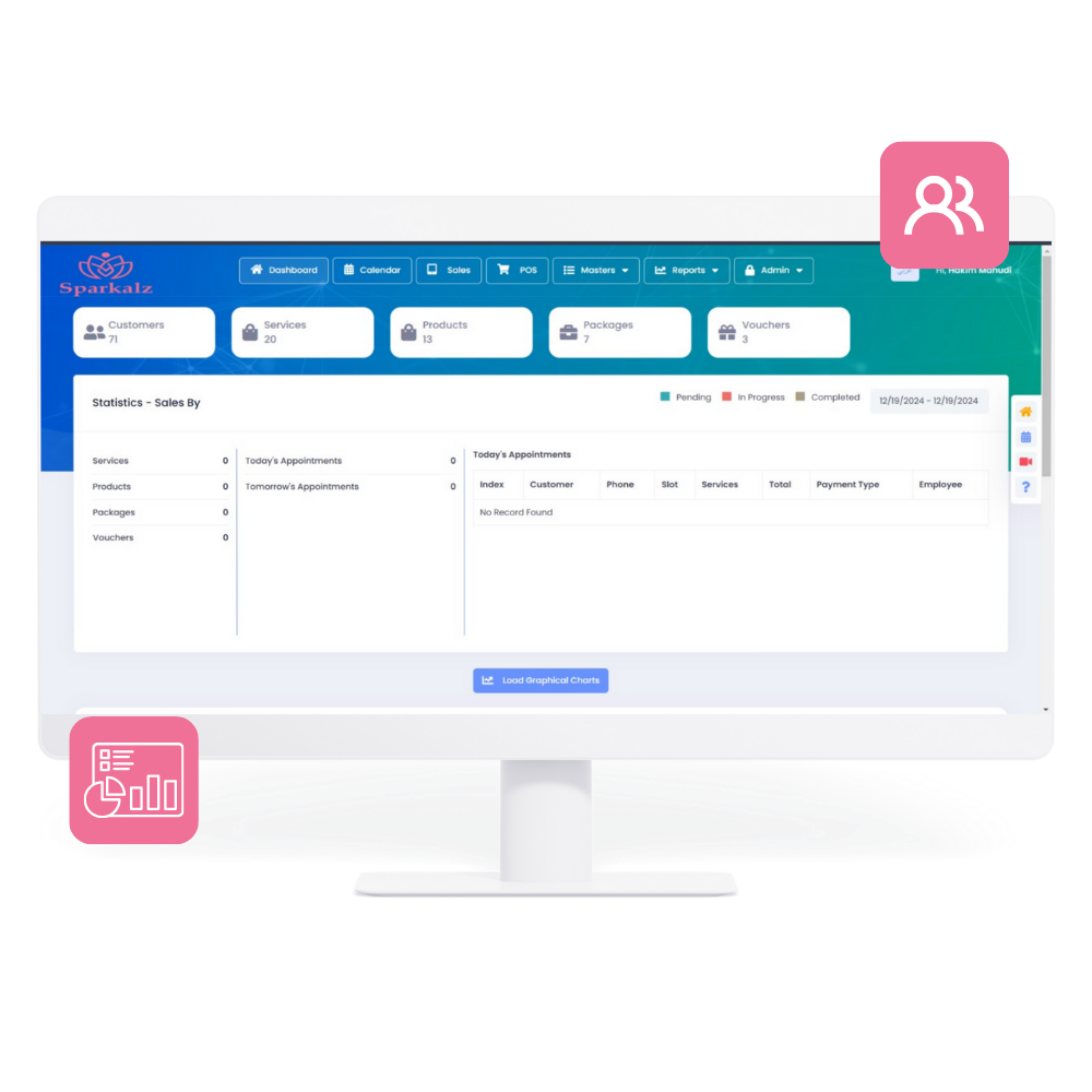 The Dashboard feature provides a real-time overview of your salon’s key metrics. Monitor bookings, sales, employee performance, and inventory from a single, user-friendly interface. Stay informed and make data-driven decisions to enhance productivity and profitability. The customizable layout ensures you see the data that matters most to your business.